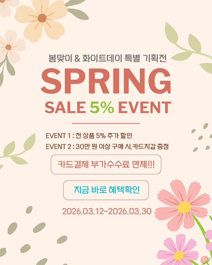 혜택 1. 전 상품 5% 할인 적용! (20만원이상)