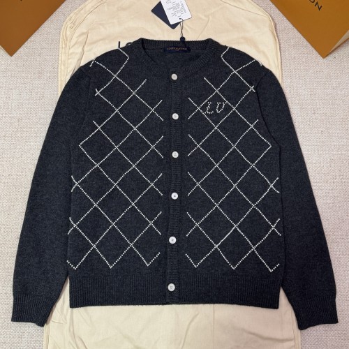 루이비통 남자 울 비즈 아가일 가디건 위드 펄리 엠브로이더리