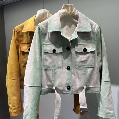 로에베 크롭 스웨이드 램스킨 그린 재킷